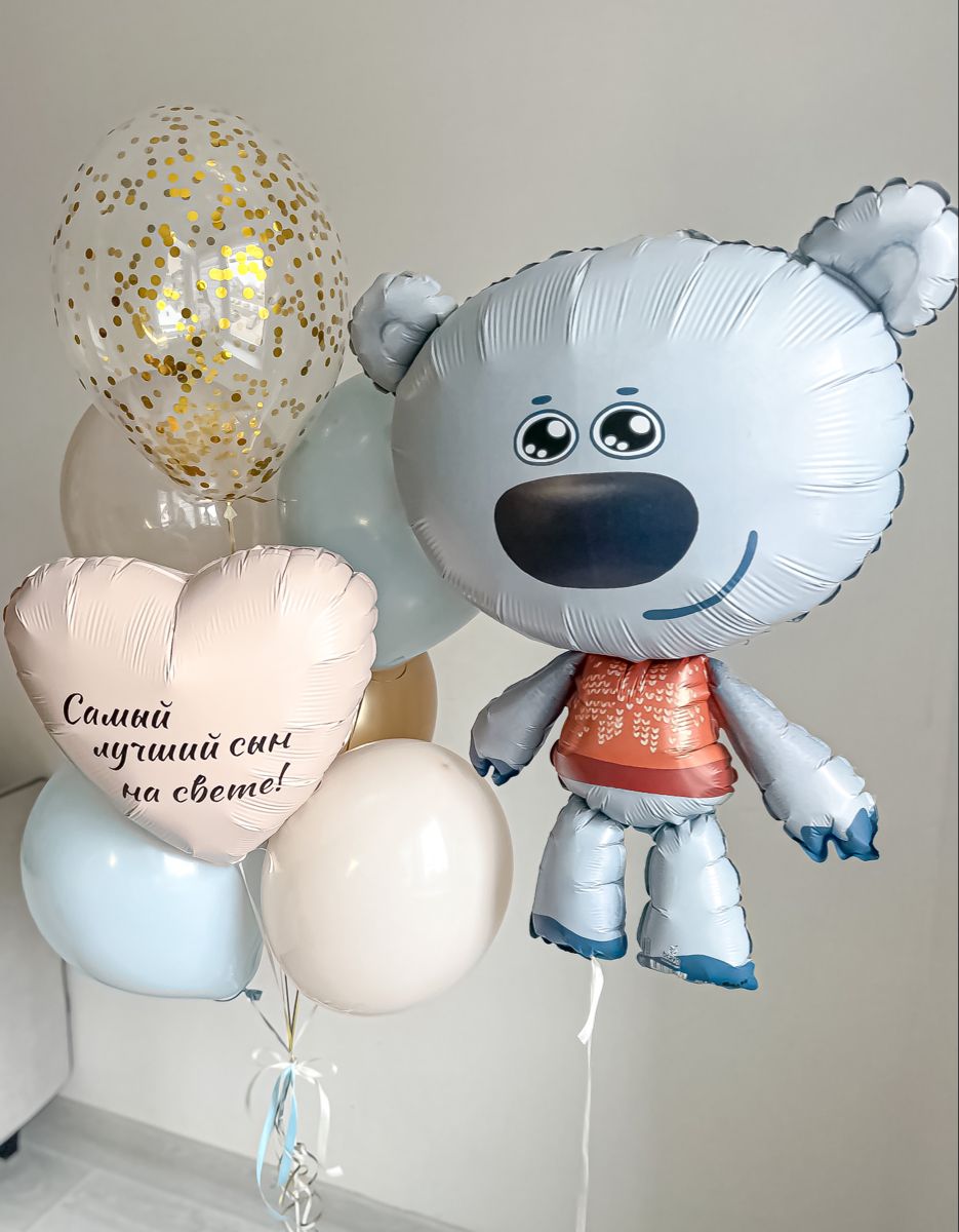 Композиция «Мишка для сынишки» в интернет-магазине OCEAN BALLOONS. Заказать с доставкой! Тел.: +7 (495) 773-43-75.